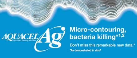 Aquacel® AG dressing are useful in the event of infection or in the prevention of infection. The ionic silver incorporated into this woven dressing starts killing a broad spectrum of pathogens, including MSRA and VRE, within 30 minutes of exposure to the Hydrofiber Technology within the dressing as demonstrated by in vitro testing.